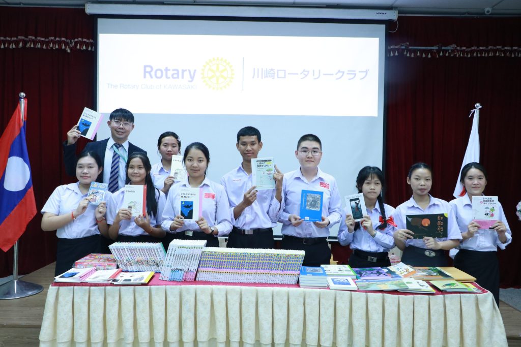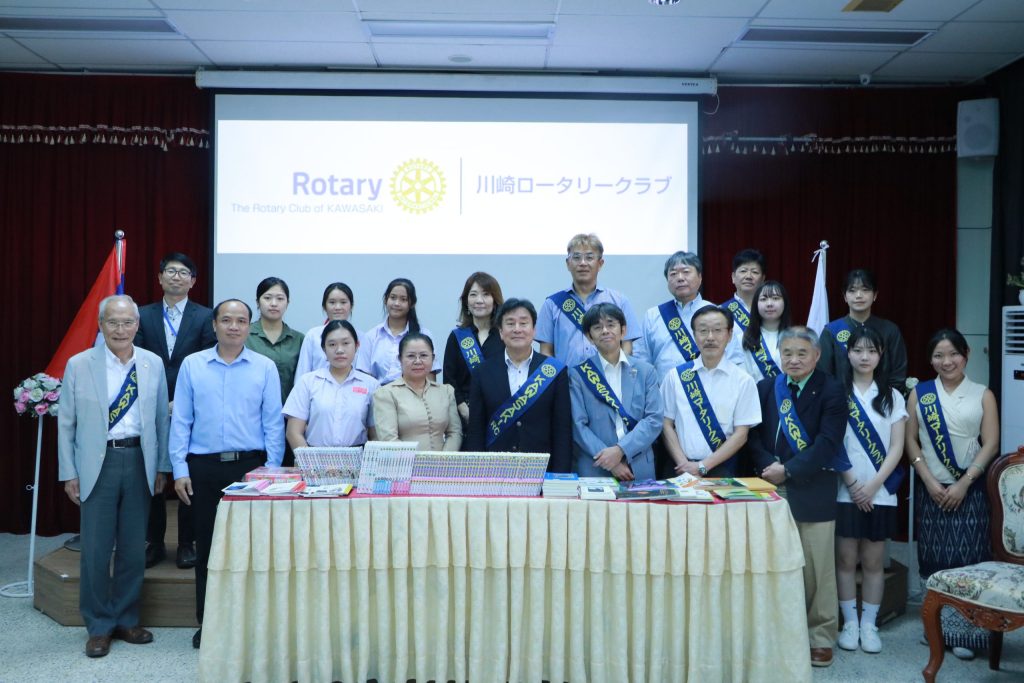 Book Handover Ceremony from the Kawasaki Rotary Club to four schools in Vientiane. On 12 February 2026, the Lao-Japan Institute hosted a ceremony to hand over extracurricular reading books from the Rotary Club of Kawasaki to four secondary schools in Vientiane.
